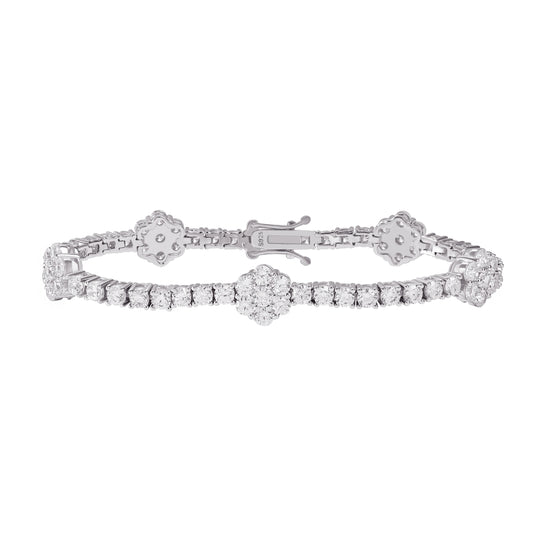Fine Flower Design GRA Certificated 925 Sterling Silver Tennis Bracelet 3mm VVS D Color