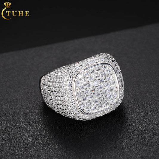 GRA Certificate VVS Baguette Moissanite Diamond Iced Out Signet Jewelry For Men