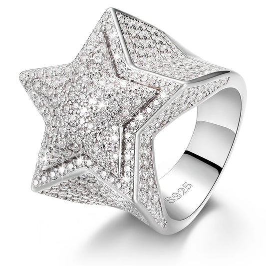 Mossanite Star Ring For Men Women VVS Moissanite Diamond Cuban Ring