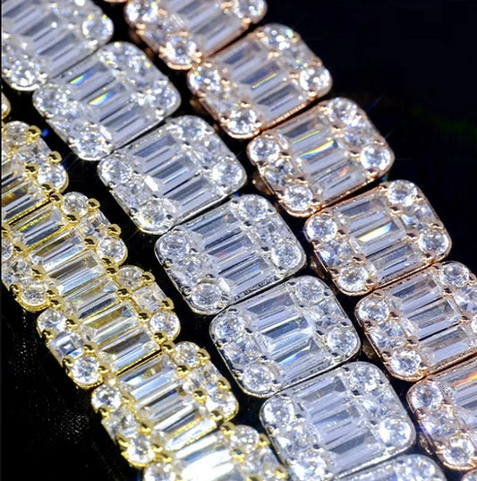 GRA Baguettes Moissanite 9mm wide Cuban chain