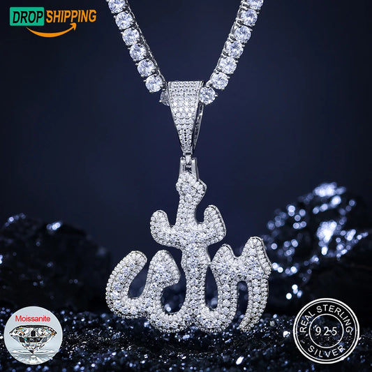 Iced Out Moissanite Allah Pendant VVS Diamond Men Jewelry Style Charm