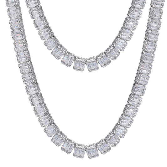 Luxury 7.5mm 925 Sterling Silver Emerald Cut VVS Baguette Moissanite Diamond Iced Out Cube Tennis Chain Necklace For Men