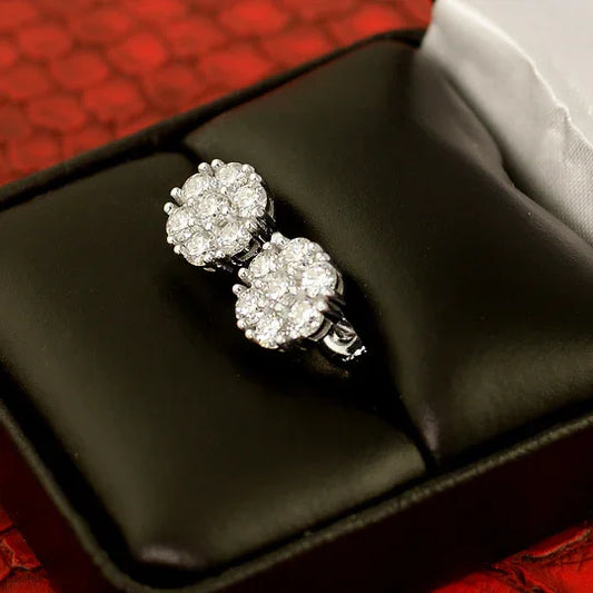 Flower Cluster Stud Earrings 1.40 Carat GRA Certified VVS1 Moissanite Cluster Earrings for Men