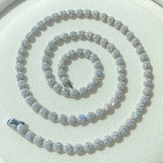 Iced Out Moissanite Chain 5mm Round Tennis Cluster Link Chain Moissanite Diamond Necklace For Men Women