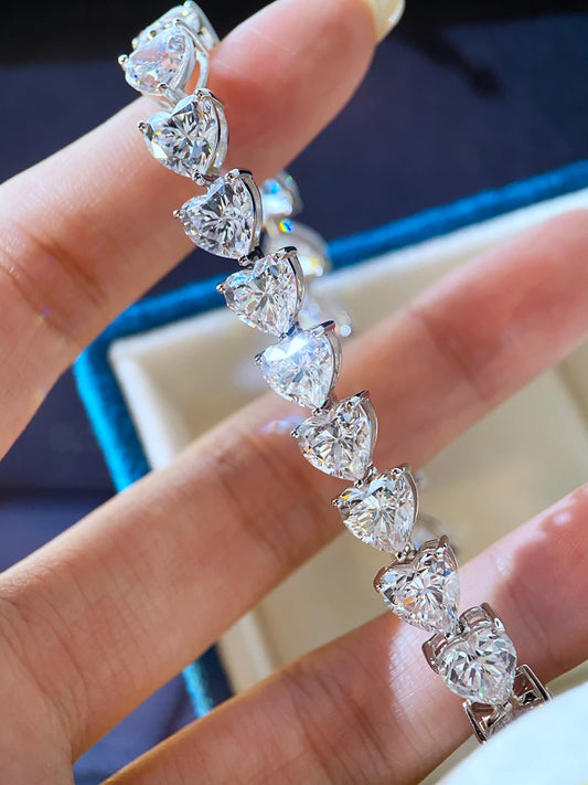 Fine jewelry 925 Silver 18K White Gold Moissanite Bracelets 4mm 7mm Heart Cut GRA Moissanite Charm Bracelet